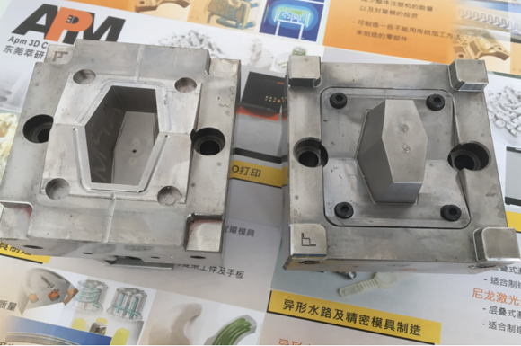 模具簡述: 模具共2個工件使用增材制造技術成型:上內模、下內模 材質:1.2709 硬度:上內模HRC52,下內模HRC50 型芯表面:省光效果